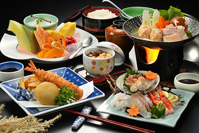 桜満ちる春、涼しげもとめる夏とお客様にご満足していただける様、四季折々の食材に優しい味つけ、 板長こだわりの夕食膳にておもてなしさせていただきます。