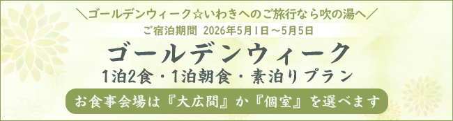【期間限定:2026/05/01~2026/05/05】ゴールデンウィークプラン<お食事会場は『大広間』か『個室』を選べます>